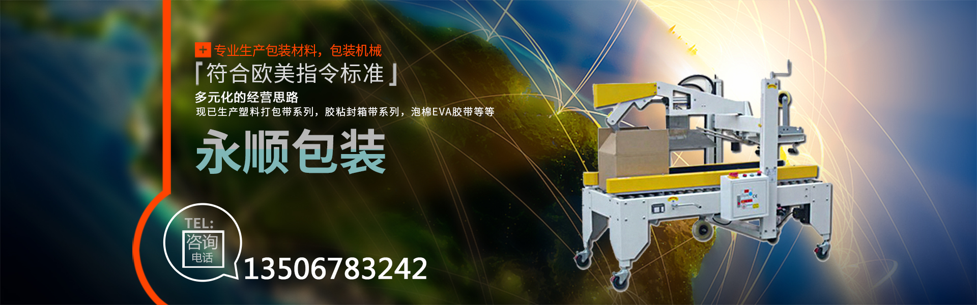 慈溪市永順包裝材料有限公司是一家專業(yè)生產包裝材料,包裝機械的廠家。公司自創(chuàng)建以來,經過不斷的努力,憑借優(yōu)異的產品質量,良好的售后服務,在市場上取得了突飛猛進的業(yè)績,獲得了客戶的廣泛認可與贊譽。公司本著多元化的經營思路,現已生產塑料打包帶系列,膠粘封箱帶系列,泡棉EVA膠帶,鋁箔膠帶、美紋膠帶、牛皮膠帶、文具膠帶。全自動打包機,收縮包裝機,移印機,真空包裝機,自動封口機,纏繞膜裹包機,等各種包裝機械(無人化全自動包裝機械)。其中塑料打包帶、粘膠帶已全面通過SGS認證,符合歐美指令標準。